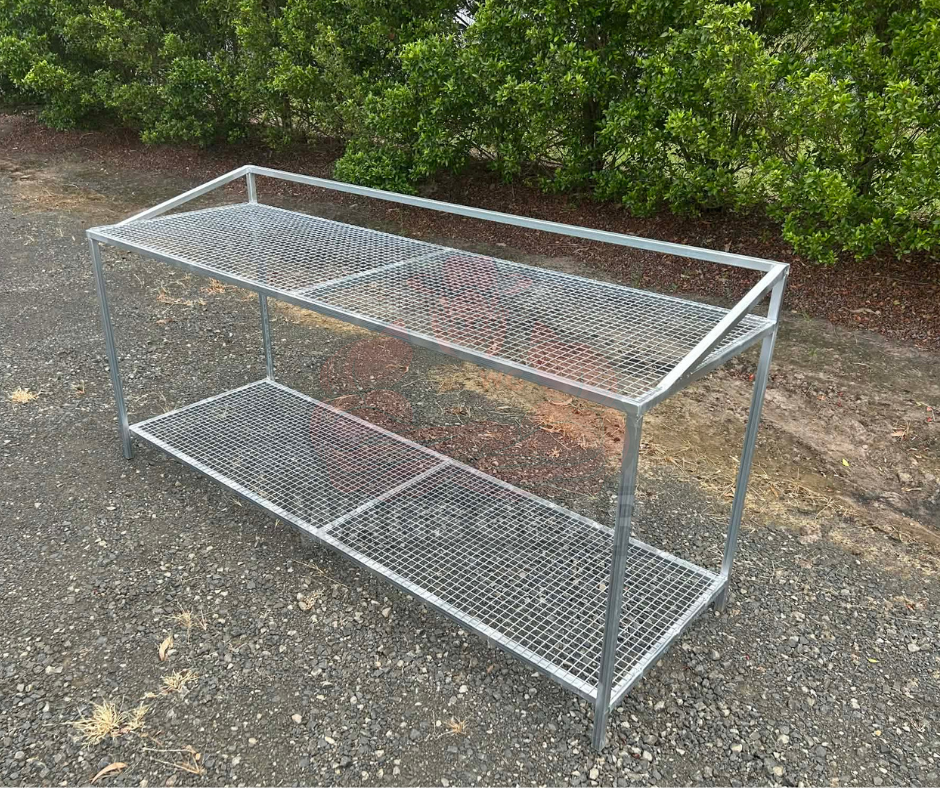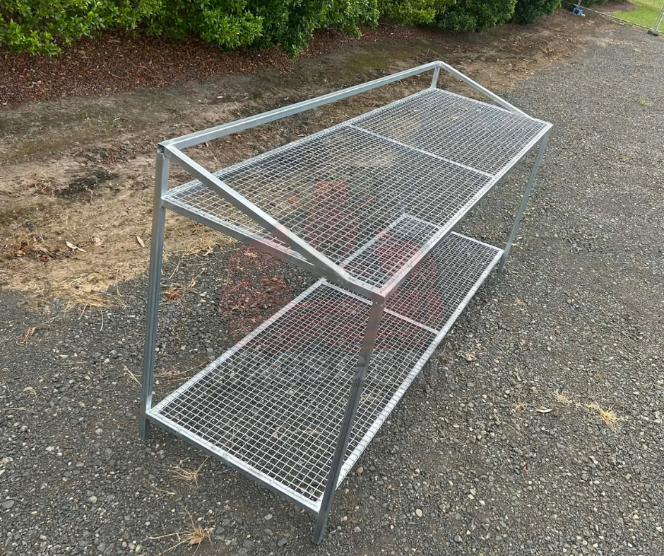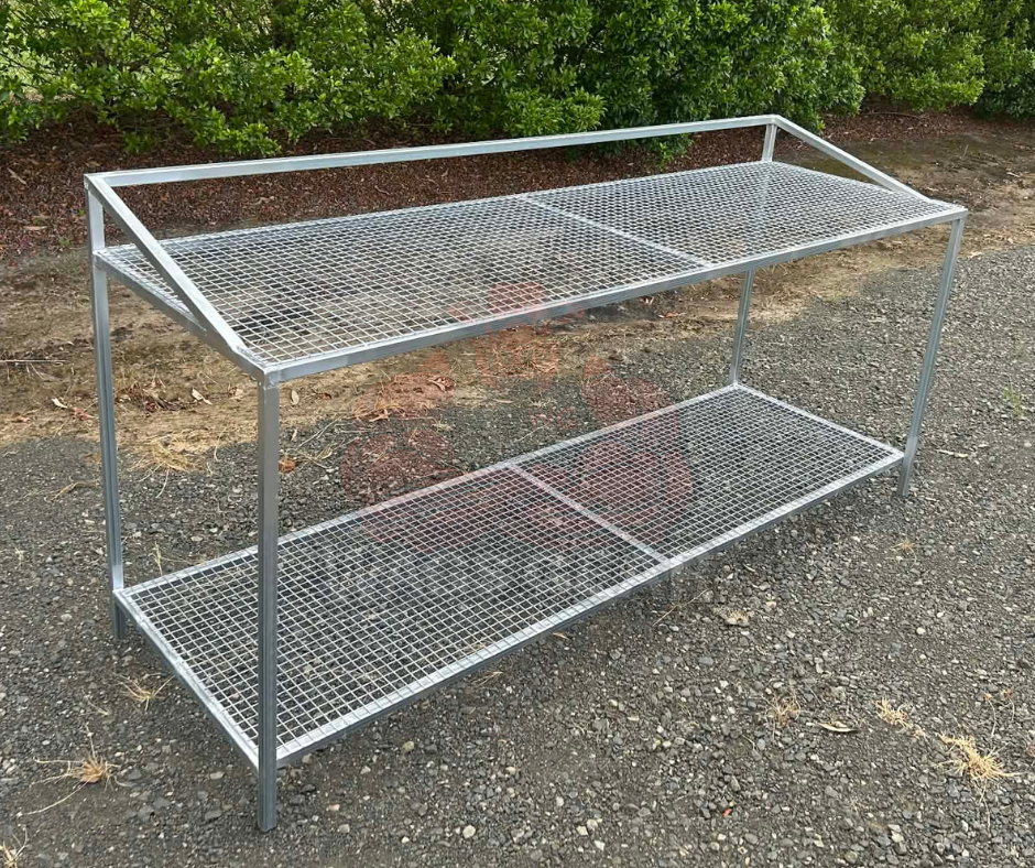 Constructed from galvanised steel, this potting bench features two fully welded mesh shelves (no screw-on panels), a flush work surface, and a rear safety guard to stop pots, trays and tools sliding off mid-session. At 2165mm long, it gives you more working room without eating your whole greenhouse or work area.